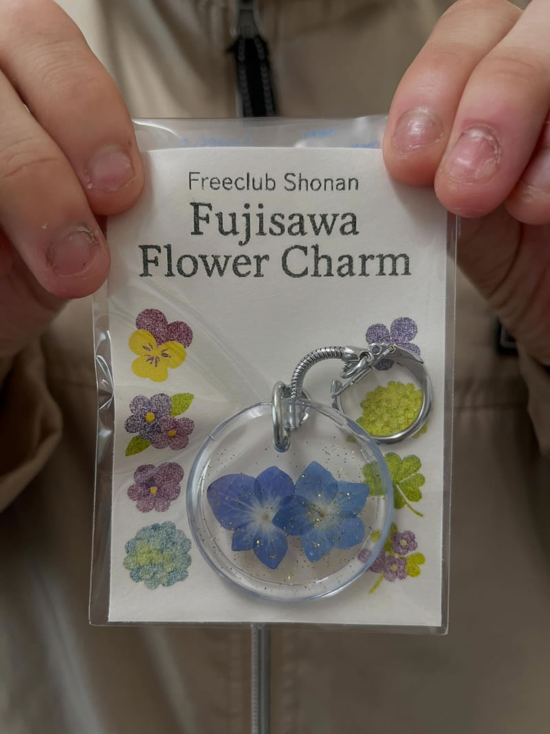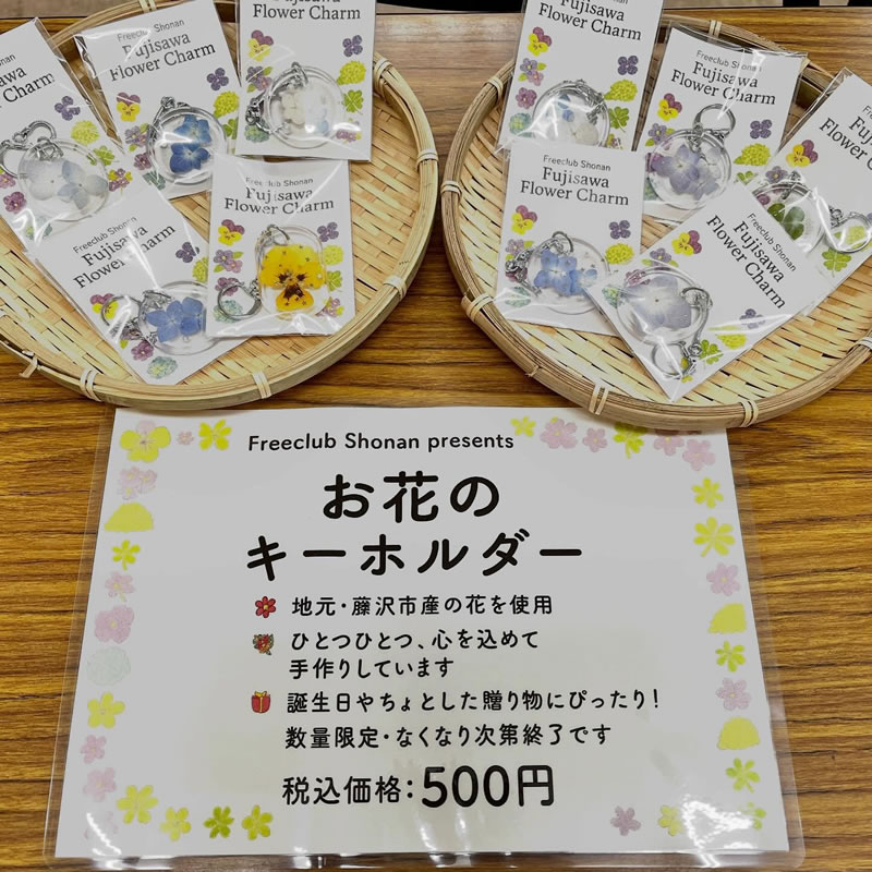 こちらでは藤沢市内で育てられた花を使用したキーホルダーを作られています。